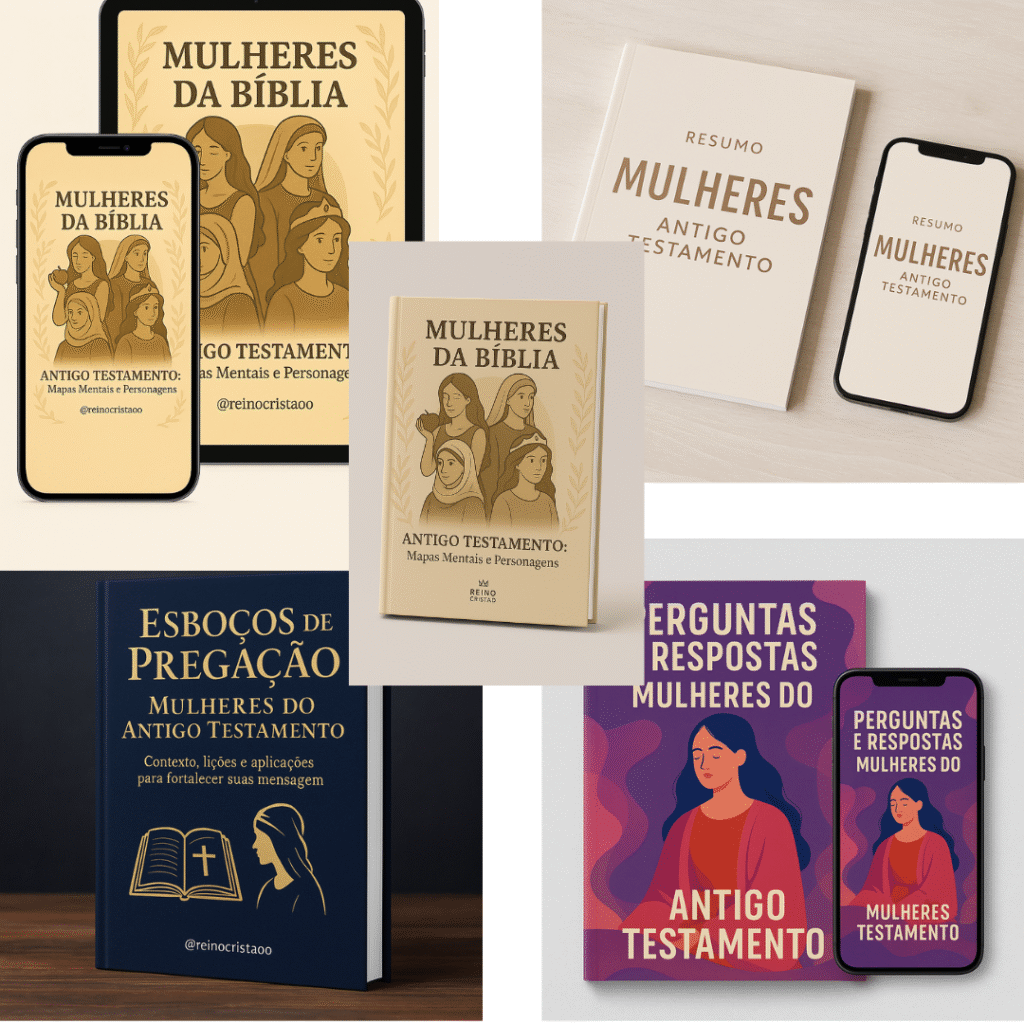 Você recebe os mapas mentais, personagens ilustradas, + os resumos escritos, perguntas e respostas, e esboços de pregação prontos.