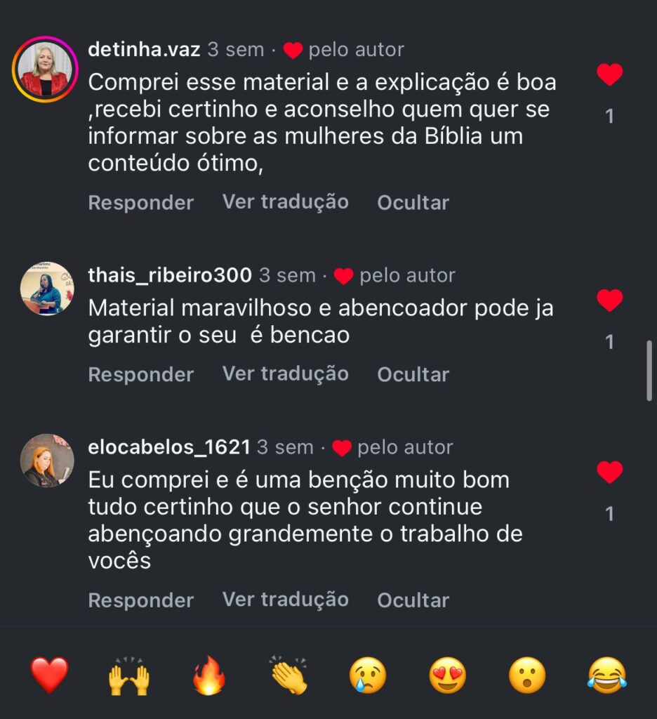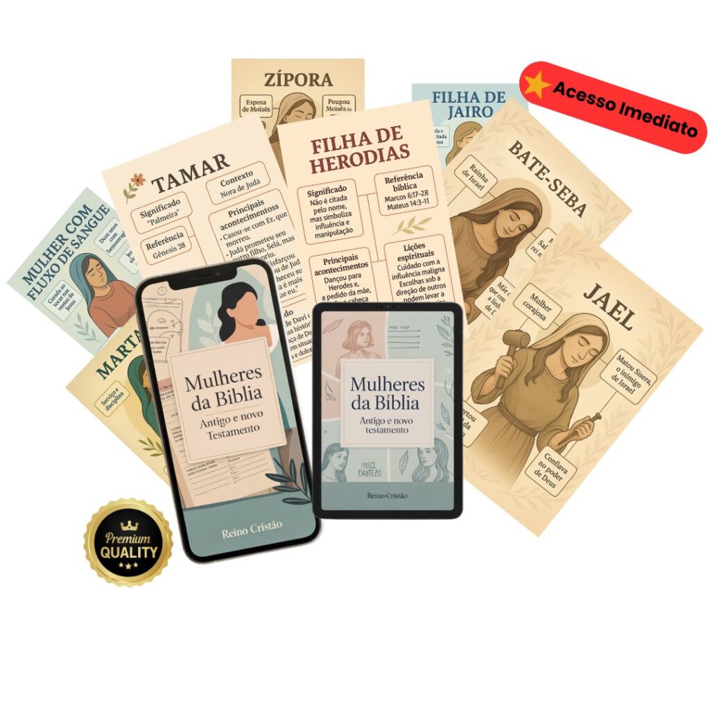 Agora você vai compreender de forma clara e profunda o contexto, o significado e o legado de cada mulher da Bíblia. De Eva a Maria Madalena, cada personagem é explicada com detalhes que vão fortalecer sua fé e sua compreensão da Palavra.