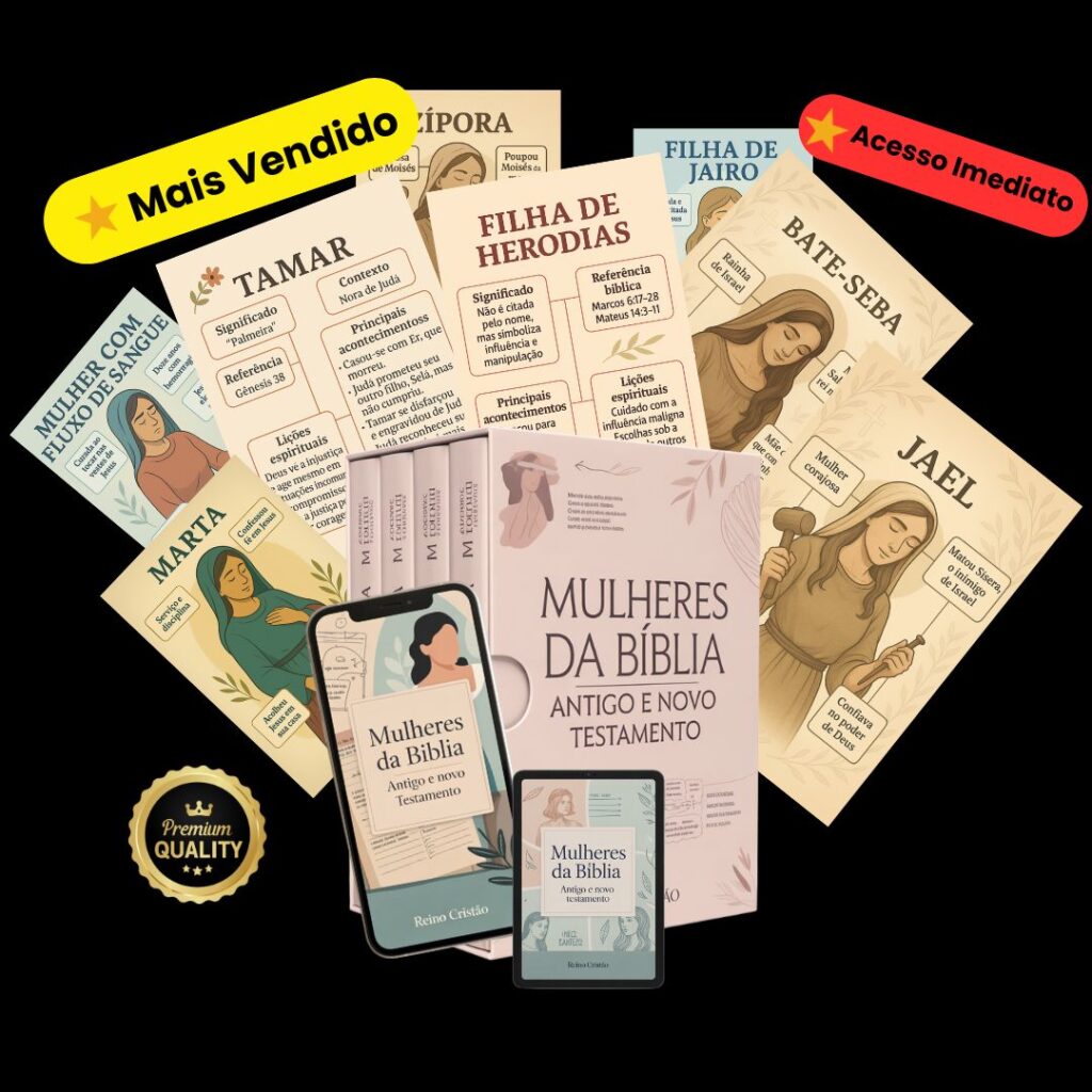 A proposta é simples e clara: estou te apresentando uma oportunidade de aprofundar seus estudos bíblicos, conhecendo a fundo a história de 60 mulheres do Antigo e Novo Testamento, por meio de mapas mentais, ilustrações exclusivas e lições espirituais prontas para aplicar em estudos, ministrações ou devocionais.